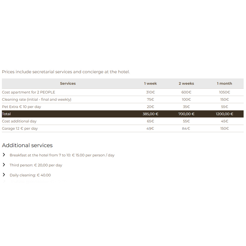 Comfortable, spacious and bright with nice furnishings; each apartment has a living room with full kitchen with all the dishes, hallway, bathroom with shower and a washing machine, double or twin beds and possibility to use the sofa-bed for one or two more people.